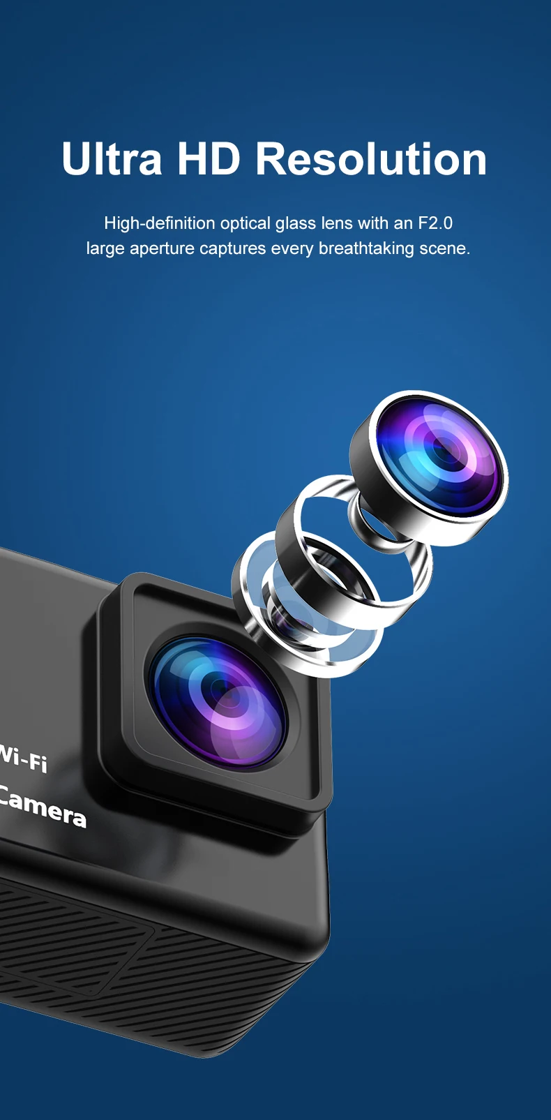 Lente de vidro óptico de alta definição com grande abertura F2.0 captura todas as cenas de tirar o fôlego.