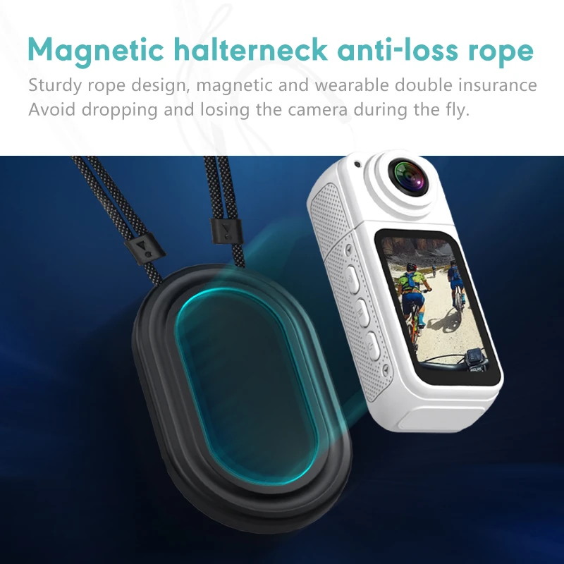 4.Com uma alça de pescoço magnética, pode obter fotos aleatórias em várias cenas.