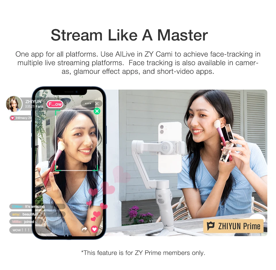 Desbloqueie mais diversão usando Smooth Q3 com ZY Cami, que é compatível com telefones iOS e Android.